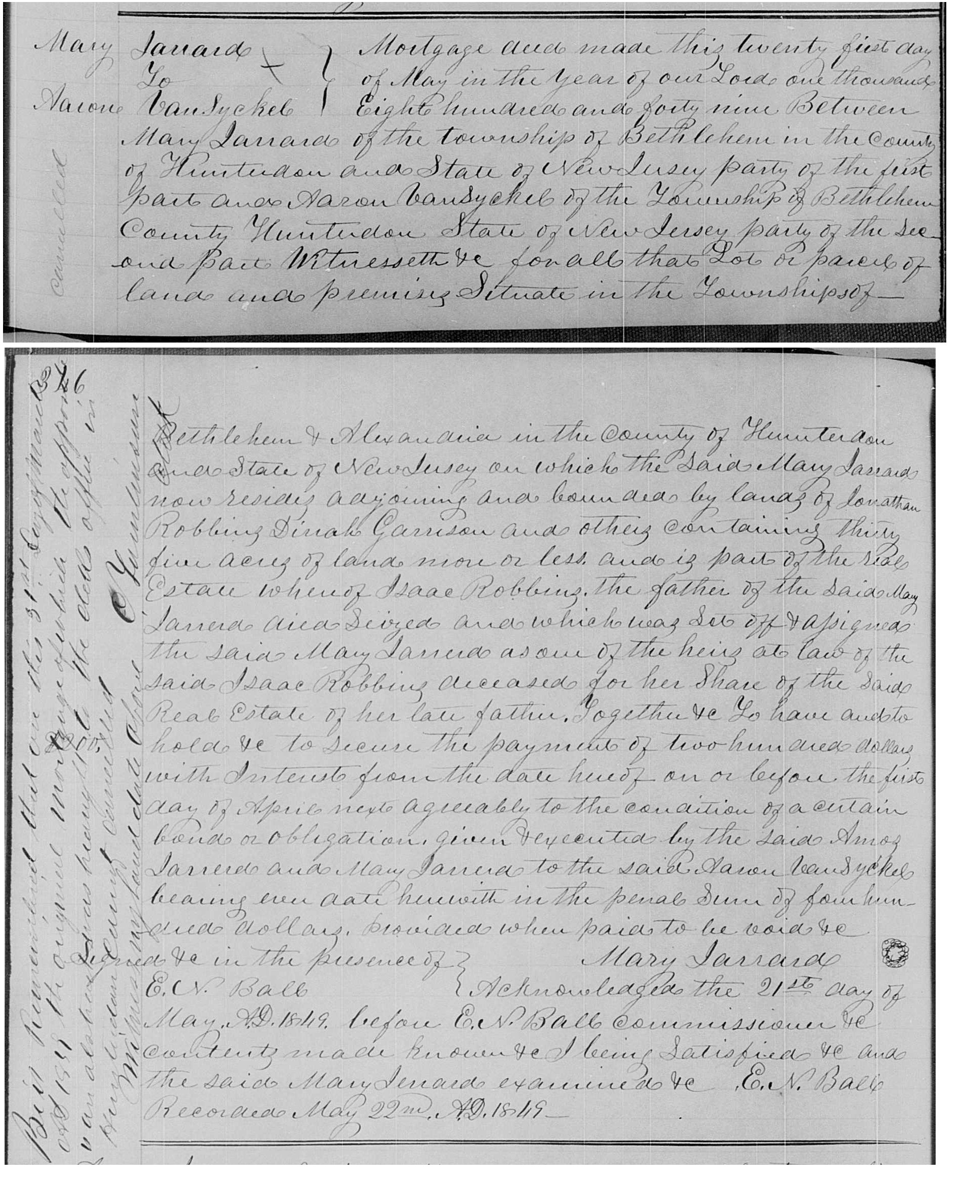 32.73 Margaret Kuhl Father - 84.2 Leonard Kuhl Mother - Catherine Trimmer Timeline - 26 May 1781 John W. Bellis born [2] [4] in Amwell Township, Hunterdon County, New Jersey [1] 12 Apr 1785 Margaret Kuhl born [1] [5] in Larison's Corner, [5] Hunterdon County, New Jersey [1] [5] 1801 Margaret Kuhl and John W. Bellis married [1] [5] 15 Dec 1802 child #1, Leonard Kuhl, born in New Jersey [1] c1804 child #2, William, born in New Jersey [1] c1806 child #3, Jacob Wack, born in New Jersey [1] 23 Jan 1808 Margaret Kuhl died [1] [5] 22 May 1812 John W. Bellis named executor of will of Catherine Trimmer [7] 1849 child #3, Jacob Wack, died [1] 9 Mar 1855 John W. Bellis died in Amwell Township, Hunterdon County, New Jersey [1] Notes - Margaret Kuhl buried in Larison's Corner Cemetery, Ringoes, Hunterdon County, New Jersey. [1] John W. Bellis son of William Bellis and Mary Housel; married second Sarah Lisk. [2] [4] William Bellis son of Adam Bellis. [2] Mary Housel daughter of Martin Housel. [2] Extras - Adam Bellis born Adam Bellowsfelt. [2] Questions - Citation #2 and Citation #4 refer to Kuhl as Cool. [3] Citation #2 names three children: Margaret, David and John. [3] Citation #6 refers to Sarah Lisk as Sarah Lyst (1783 - 1864). [3] Citations - 1. "The Kuhl Family of Hunterdon County, New Jersey", Michael Gesner <mgesner@yahoo.com> and John William Kuhl <jkuhl@patmedia.net> (3.358, child i), 2012 2. "Early Germans of New Jersey", Theodore Frelinghuysen Chambers, 1895 3. Marshall Edward Lake (1.0) <genealogy@mlake.net> 4. "History of Hunterdon and Somerset Counties New Jersey", James P. Snell, 1881, Reference->32.73.txt 5. John William Kuhl <jkuhl@patmedia.net> (3.358, child i), Misc->85.-2 6. https://goodspeedhistories.com/the-housel-family-tree/ 7. Documents Relating to the Colonial, Revolutionary & Post-Revolutionary History of the State of New Jersey, Volume XLI - Calendar of New Jersey Wills, Administrations, Etc., Volume XII, 1810-1813, Records->Misc->84.2-3.jpg Children: 19.208 i. Leonard Kuhl. [1] [7] ii. William. [1] [7] iii. Jacob Wack. [1] [7]