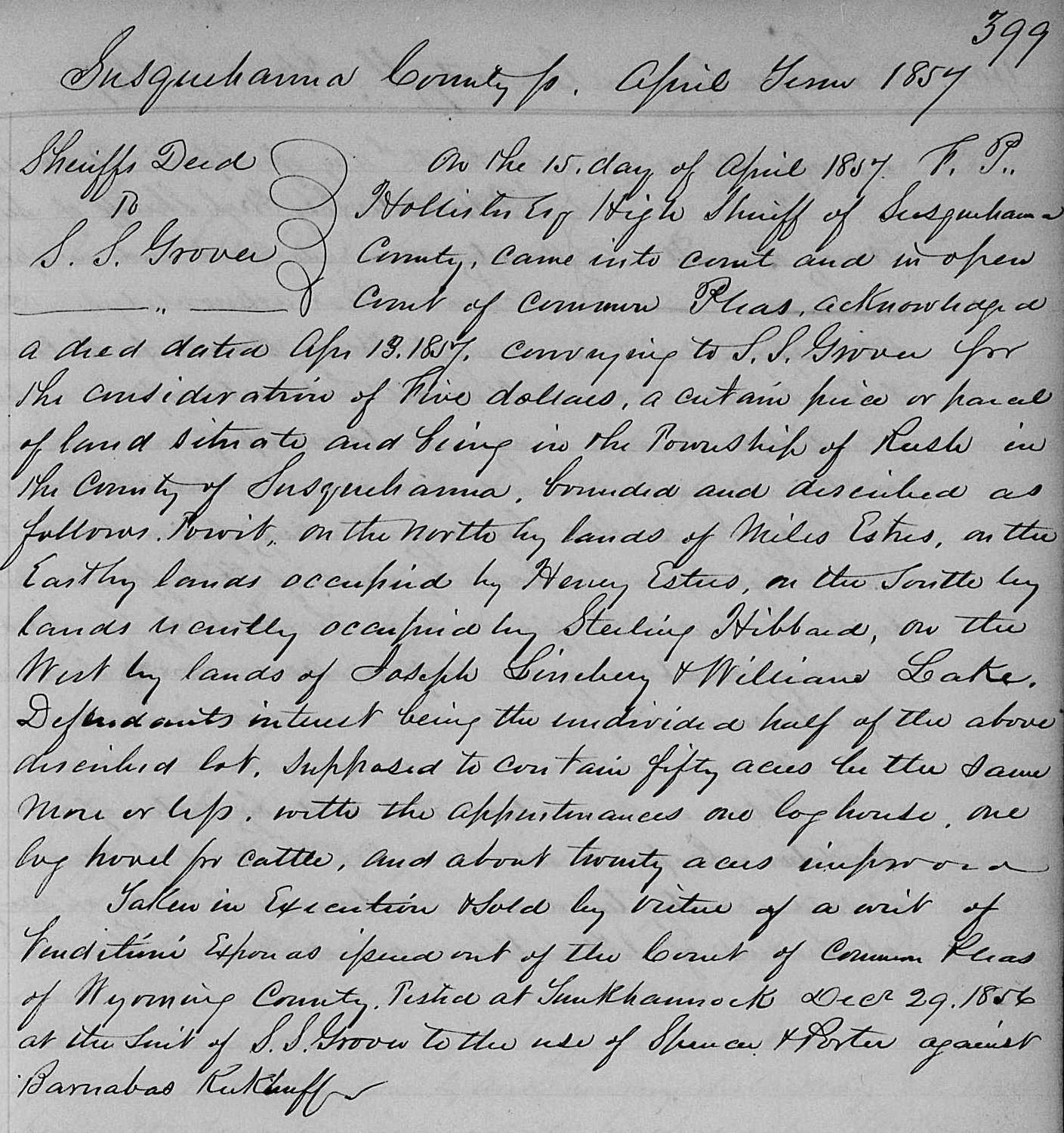 8.0 William G. Lake Father - 16.0 Abraham Lake Mother - 17.0 Susan Garrison 9.0 Catharine Margaret Linaberry Father - 18.0 John Linaberry Mother - 19.0 Anna Elisabetha Kishpaugh Timeline - 1822 William G. Lake born [22] [38] in Hunterdon County, [45] New Jersey [10] [14] [45] 17 Mar 1822 John W. Smith born in Pennsylvania [18] [19] c1825 Jacob Titman born in New Jersey [15] 15 Dec 1829 Catharine Margaret Linaberry born [21] [43] in Knowlton Township, Warren County, [32] [43] New Jersey [21] [32] [43] 1830 living in Greenwich Township, Warren County, New Jersey [35] 1840 living in Knowlton Township, Warren County, New Jersey [36] 1849 William G. Lake and Catharine Margaret Linaberry married [41] [43] [46] in Knowlton Township, Warren County, New Jersey [32] [43] 1850 living in Knowlton Township, Warren County, New Jersey [14] William G. Lake working as a laborer [14] 1851 William G. Lake working as a farmer [6] [7] living in Knowlton Township, Warren County, New Jersey [6] [7] 2 Feb 1851 child #1, Marshall, born in Knowlton Township, Warren County, New Jersey [6] [7] 11 Oct 1852 child #2, John L., born in Knowlton Township, Warren County, New Jersey [23] [40] [44] 22 May 1853 child #2, John L., died [23] [44] in Knowlton Township, Warren County, New Jersey [44] 24 Dec 1853 child #3, Hampton T., born in New Jersey [9] [11] 26 Mar 1855 William G. Lake borrowed $100 from John Linaberry (18.0) [37] 26 Oct 1855 child #4, Abraham L., born in Auburn Township, Susquehanna County, Pennsylvania [25] [26] [27] 15 Apr 1857 William G. Lake named in deed, Rush Township, Susquehanna County, Pennsylvania [48] 13 Jun 1858 child #5, Emma Elizabeth, born in Auburn, Auburn Township, Susquehanna County, Pennsylvania [12] [28] [29] Nov 1858 child #6, Enoch Cool, born in Pennsylvania [30] [31] 1860 living in Rush Township, Susquehanna County, Pennsylvania [10] William G. Lake working as a farmer [10] William G. Lake died [22] [38] [45] in Rush Township, Susquehanna County, Pennsylvania [45] 1 Apr 1861 Catharine Margaret Linaberry borrowed $50 from John Linaberry (18.0) [37] 1863 Catharine Margaret Linaberry living in Rush Township, Susquehanna County, Pennsylvania [1] Elisha Osborn living in Rush Township, Susquehanna County, Pennsylvania [1] 30 Apr 1863 Catharine Margaret Linaberry and Elisha Osborn married by Rev. H. H. Gray [1] 12 May 1863 marriage announcement for Catharine Margaret Linaberry published in Democrat, Montrose, Susquehanna County, Pennsylvania [1] 1869 Catharine Margaret Linaberry living in Auburn Township, Susquehanna County, Pennsylvania [2] [3] Jacob Titman living in Auburn Township, Susquehanna County, Pennsylvania [2] [3] 21 Jan 1869 estate of William G. Lake sold 122 acres of land in Rush Township, Susquehanna County, Pennsylvania to William B. Linaberry (5.35) and Alford B. Linaberry (5.73) [34] 12 Jun 1869 Catharine Margaret Linaberry and Jacob Titman married at 12:30 PM in Forest Lake, Pennsylvania by Rev. William C. Tilden [2] [3] 23 Jun 1869 marriage announcement for Catharine Margaret Linaberry published in Democrat, Montrose, Susquehanna County, Pennsylvania [2] 1870 Catharine Margaret Linaberry living in Auburn 4 Corners, Auburn Township, Susquehanna County, Pennsylvania [15] Jacob Titman working as a carpenter [15] 1871 Catharine Margaret Linaberry living in Auburn Township, Susquehanna County, Pennsylvania [47] 18 Mar 1871 Catharine Margaret Linaberry and Jacob Titman sell 128 4/10 perches in Rush Township, Susquehanna County, Pennsylvania to Abraham Lake (16.0) [47] 1872 Catharine Margaret Linaberry living in Auburn Township, Susquehanna County, Pennsylvania [17] 1877 Catharine Margaret Linaberry living in Auburn Township, Susquehanna County, Pennsylvania [42] 1880 Catharine Margaret Linaberry living in Auburn Township, Susquehanna County, Pennsylvania [16] Catharine Margaret Linaberry working as a farmer [16] 1884 John W. Smith living in Auburn Township, Susquehanna County, Pennsylvania [24] 1886 John W. Smith living in Auburn Township, Susquehanna County, Pennsylvania [24] 1888 John W. Smith living in Auburn Township, Susquehanna County, Pennsylvania [24] 1897 Catharine Margaret Linaberry has a farm [5] Apr 1898 article mentioning Catharine Margaret Linaberry published in a Susquehanna County, Pennsylvania newspaper [5] 1898 Catharine Margaret Linaberry has a farm [5] 17 Jan 1898 Mary Ross died [32] 1899 John W. Smith a Deacon [4] 19 Jan 1899 marriage announcement for Catharine Margaret Linaberry published in Montrose Democrat, Montrose, Susquehanna County, Pennsylvania [4] 26 Jan 1899 Catharine Margaret Linaberry and John W. Smith married [4] 1900 Catharine Margaret Linaberry living in Auburn Township, Susquehanna County, Pennsylvania [18] John W. Smith working as a landlord [18] 1907 Catharine Margaret Linaberry living in Auburn Township, Susquehanna County, Pennsylvania [19] John W. Smith a Deacon [19] 27 Feb 1907 John W. Smith died [19] 7 Mar 1907 obituary for John W. Smith published in Montrose Democrat, Montrose, Pennsylvania [19] 1909 Catharine Margaret Linaberry living in Auburn Four Corners, Auburn Township, Susquehanna County, Pennsylvania [39] 20 Dec 1915 Catharine Margaret Linaberry died in Dimock Township, Susquehanna County, Pennsylvania from pneumonia [21] [22] [43] 22 Dec 1915 Catharine Margaret Linaberry buried in Jersey Hill Cemetery, Auburn Township, Susquehanna County, Pennsylvania [21] 30 Dec 1915 death notice for Catharine Margaret Linaberry published in Montrose Democrat, Montrose, Pennsylvania [20] Notes - William G. Lake buried in Jersey Hill Cemetery, Auburn Township, Susquehanna County, Pennsylvania. [23] Catharine Margaret Linaberry known as "Margaret", [12] "Kate", [13] "Caty". [32] Elisha Osborn died by 1884. [24] John W. Smith married first Mary Ross. [32] Child #2, John L., buried in Hainesburg Cemetery, Knowlton Township, Warren County, New Jersey. [23] Questions - Citation #18 records Catharine Margaret Linaberry as Margrat C. [17] Citation 